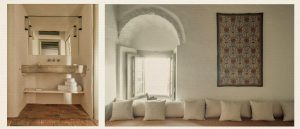 Located on the ground floor, the Garden Room is the perfect oasis during the hot summer months, offering a refreshing retreat with serene views and the delightful aroma of myrtle and lemon trees. Featuring dark wooden ceilings and vintage fabrics, this room exudes a cozy ambiance that is further enhanced by the unique totems created by local artists. Among the rooms available, the Garden Room is perhaps the most inviting and comfortable, providing a welcoming and rejuvenating haven for your stay